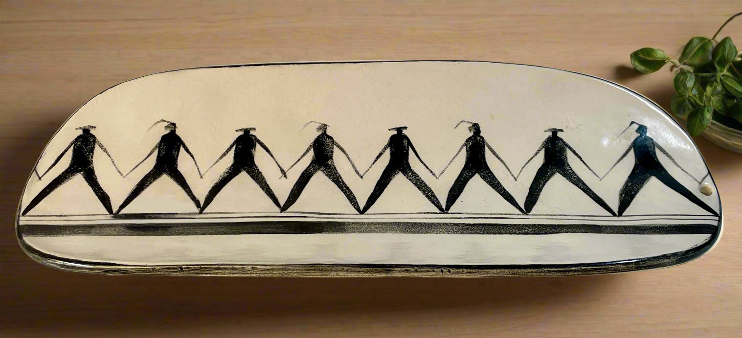 ‘Harvest Dance’ is a decorative art piece inspired by the Anasazi Native Americans. Its mid-century modern aesthetic and tribal influences create a unique addition to any space. Created in Santa Fe, NM, this piece brings a touch of cultural history and timeless design to your home.