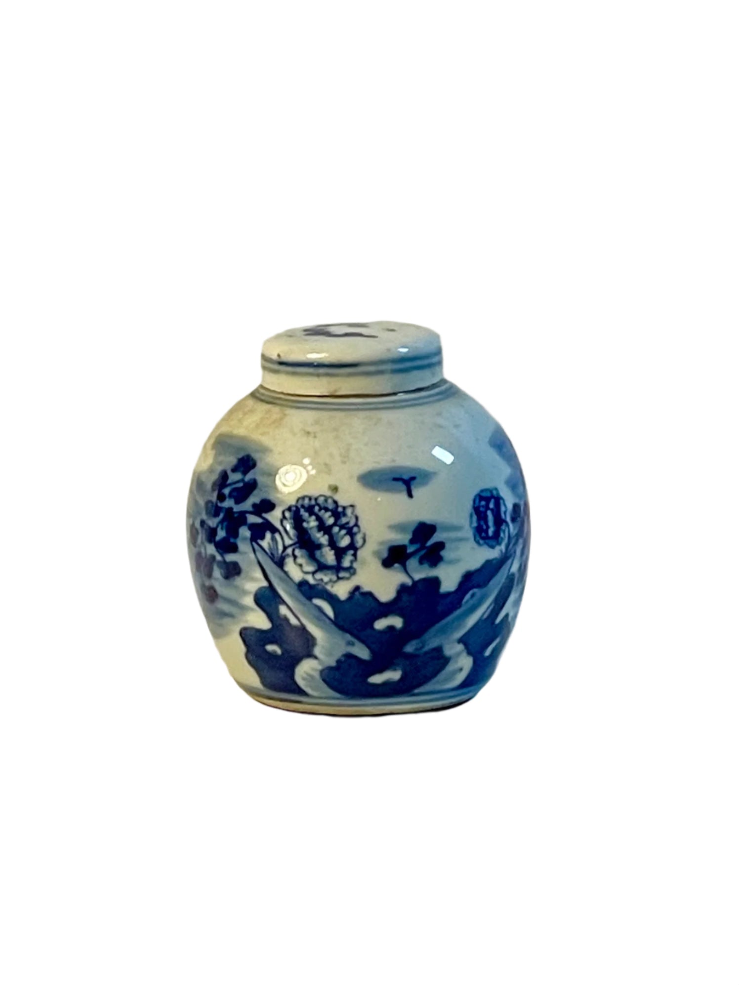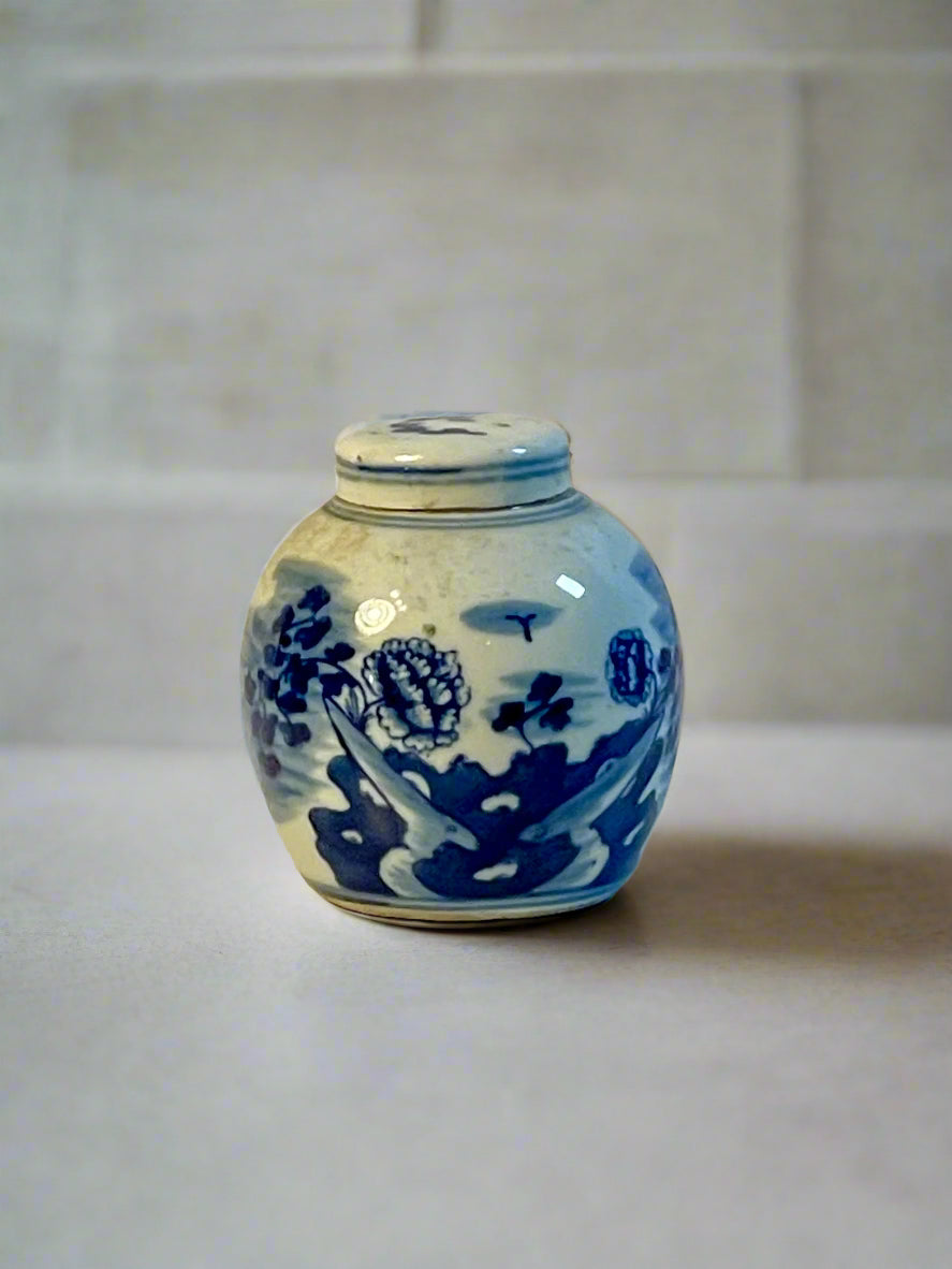 Indulge in luxury with our Miniature Chinoiserie Ginger Jar. This exquisite 3" lidded jar is not only a collectible, but a beautiful display piece for your glass cabinet, etagere, or secretary. Its intricate design adds a touch of sophistication and artistry to any space.