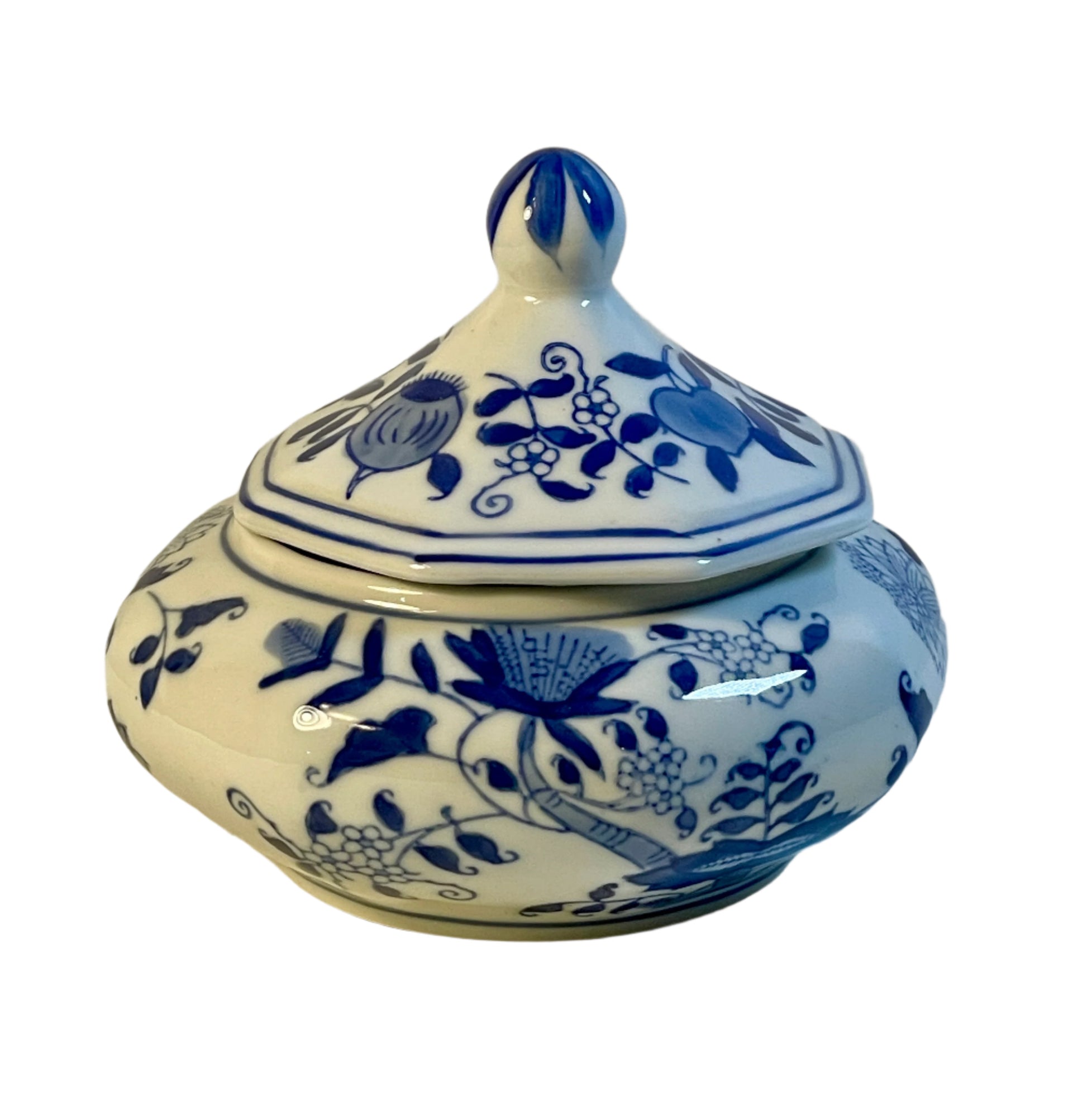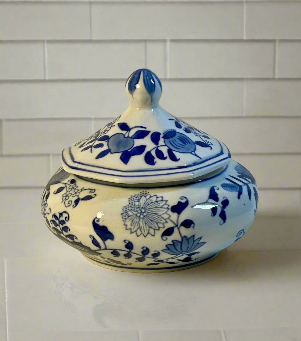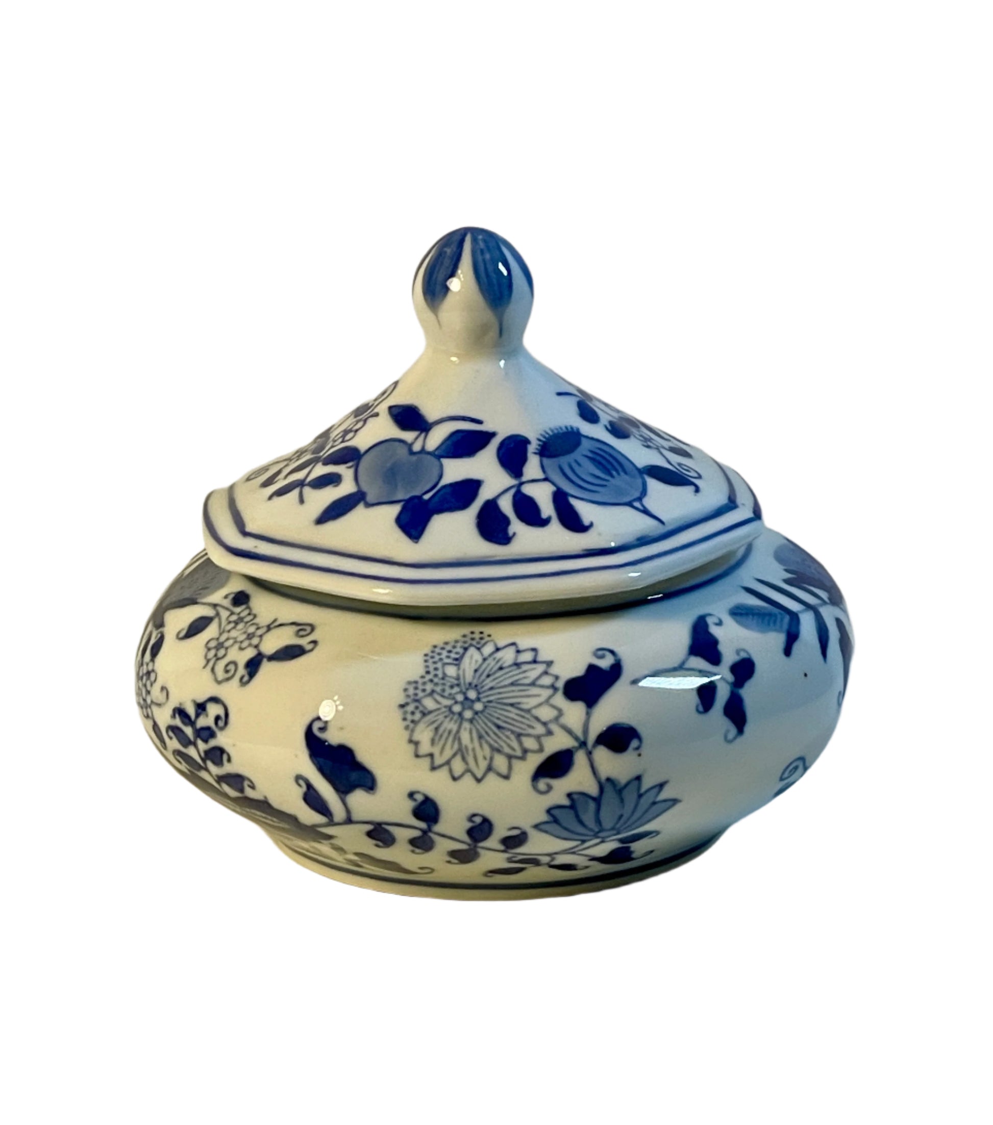 Elevate your decor with our exquisite Chinoiserie Ginger Jar. Expertly crafted in an octagonal shape, this jar exudes opulence with its traditional chinoiserie design. The attached lid adds a touch of functionality to this lidded candy style dish, making it a luxurious addition to any elegant home.